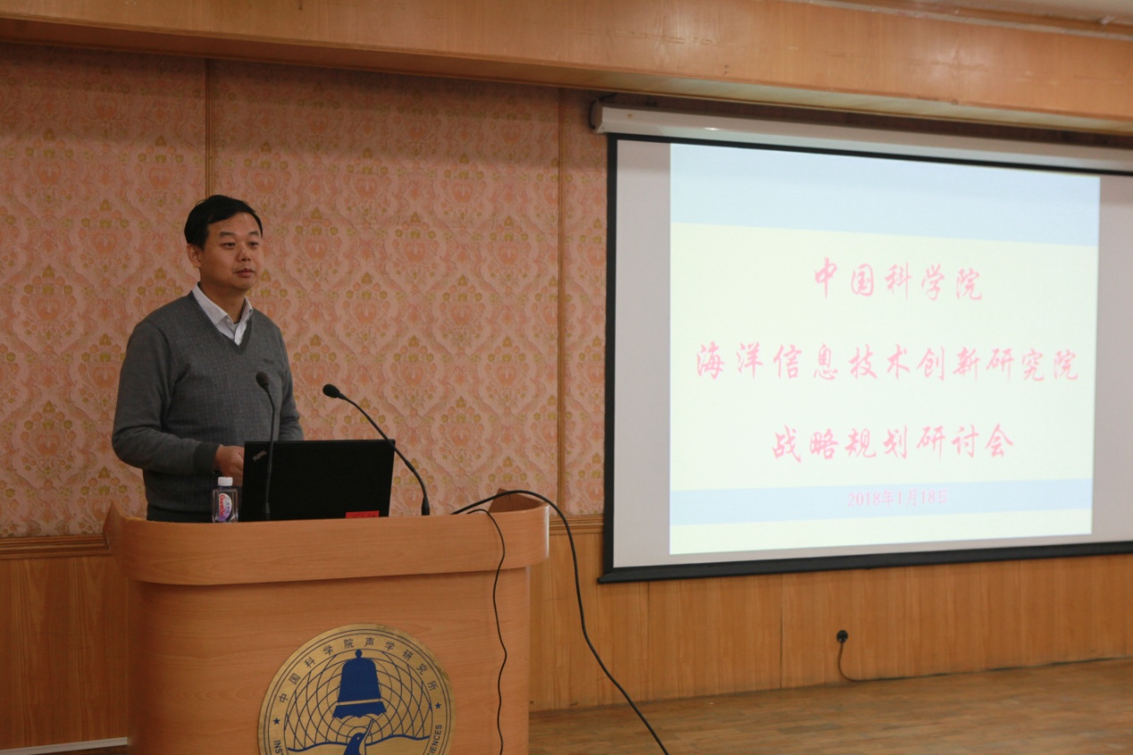 为深入贯彻创新驱动发展战略,大力推进战略高技术研究创新,2018年1月18日,中国科学院海洋信息技术创新研究院(以下简称:海洋创新院)在声学所DSP大楼多功能厅,组织召开了“十三五”战略规划研讨会。中科院重大任务局吴园涛主管,海洋创新院工作组成员王小民、李浩然,张仁和院士、侯朝焕院士、李启虎院士,各研究单元和职能部门代表参加了会议。会议由海洋创新院工作组成员、声学所副所长马晓川主持。