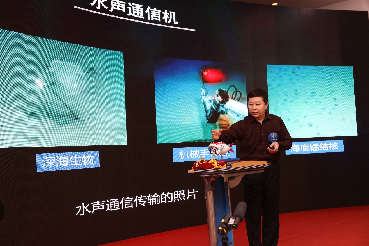 声学所徐震以“蛟龙”号的声学系统为话题,结合仿真模型、新闻视频等辅助手段,在4分钟内生动阐释了载人潜水器的“耳、眼、喉”——水声通信技术,并介绍了“蛟龙”号对建设海洋强国的重要意义,获得评委和观众的好评。