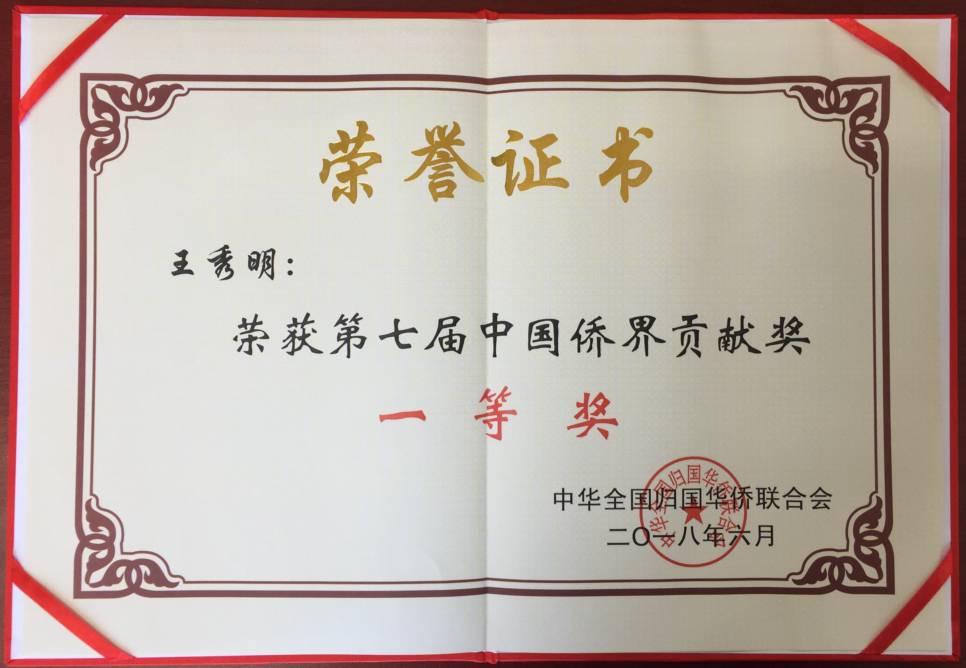 据悉,中国侨界贡献奖是由中国侨联于2003年设立,在中央组织部、人力资源和社会保障部、中国科学院、中国科协等单位的支持下,至今已成功举办七届。对于激励侨界人才立足本职、建功立业、报效国家发挥了积极作用。本届共评选出104名“中国侨界贡献奖”获奖者,其中一等奖38名,二等奖66名。获奖者中,有中科院院士3人,教育部“长江学者”13人,博士学位以上的占88.5%。