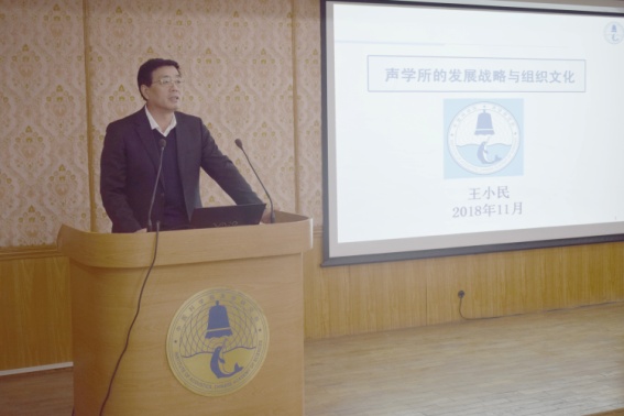 培训中,王所长介绍了声学所的发展历程、战略规划及文化创新建设,为新职工们深入浅出地讲解了声学所的发展愿景以及组织目标、治所方针、所规所训、发展理念等组织文化。王所长着重讲述了海洋创新院暨声学所的发展现状和十三五战略规划,让大家了解到目前的声学所是一个立足于声学和信息处理多学科、多研究方向的研究机构,我们的工作要面向国家重大战略需求、面向世界科技前沿、面向国民经济主战场。无论是院士大家,还是每一位普通研究和管理人员,都在用“标新立异,一丝不苟、奋力拼搏、亲自动手”的探索精神来诠释几代声学所人的灵魂,为“国家的声学所、国际的科学家”这一组织目标而努力奋斗。同时,王所长还强调“一个没有文化的研究所是没有灵魂的”,要建设好声学所的创新文化。