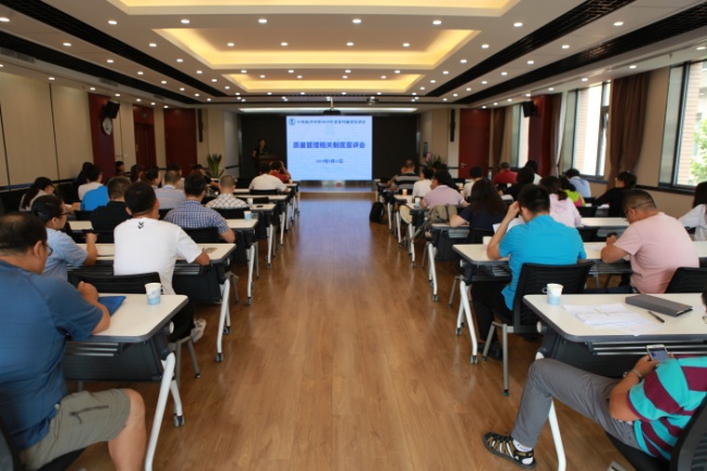 2019年9月11日上午,综合办公室会同质量管理部组织召开了首场宣讲会,质量管理部相关同志介绍了质量管理工作相关制度和要求。全所各研究单元、各职能部门职工、学生60余人参加了会议。会议由综合办公室副主任张莉主持。