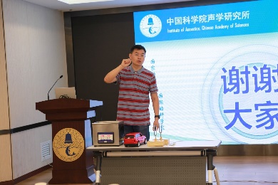 李浩然对各位老师的到来表示热烈欢迎,她介绍了声学所概况,以及科学传播工作动态,包括每年开展公众科学日活动、组织参加国内各类科普赛事、举办科普进校园活动等。她希望,通过今天的研修活动,能够使每位老师都有所收获,进一步促进声学所与西城区中小学校的交流合作。