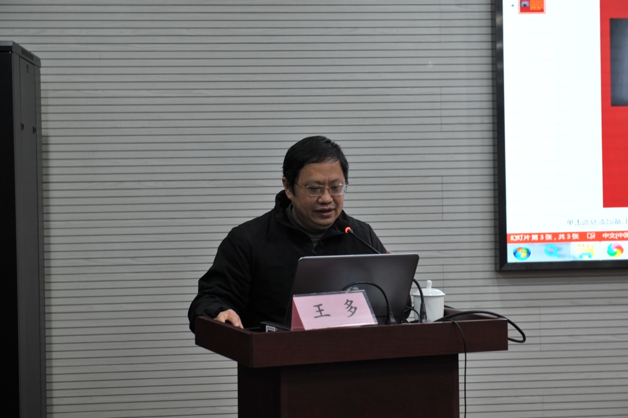 会上邀请上海市党的十九届五中全会精神宣讲团成员、解放日报上观新闻主编王多做专题辅导报告,王多主编以“我们的现代化——党的十九届五中全会精神解读”为题,紧紧结合自己的学习思考和体会展开论述。他指出,要深刻认识我国进入新发展阶段的重大意义、有利条件和重要特征,准确把握2035年远景目标和十四五我国发展的指导方针、主要目标、重点任务,牢牢把握构建新发展格局的战略构想和重要着力点,坚持党的全面领导,动员各方面力量为实现十四五规划和2035年远景目标而团结奋斗。王主编视野开阔、分析透彻,从新闻媒体独特的角度,全面地向大家阐释了全会的精神实质和丰富内涵。