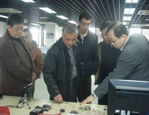 丁仲礼副院长一行参观了嘉兴工程中心水声技术、医疗声学、新媒体电声技术等方面的最新科研与产业化成果。在水声学成果展台前,丁院长详细听取了冯海泓主任关于水下定位声纳、声信标、应答释放器和图像声纳等水声设备的用途、指标和技术水平等情况,饶有兴趣的询问了这些产品在民用方面的市场情况,肯定了未来海洋资源开发会有更广泛的需求。在医疗声学研究成果展台前,冯海泓主任向丁院长介绍了来自美国的合作专家张朝英博士,详细阐述了数字助听器产品的联合开发模式和最新进展情况。丁院长对高性能、低价格的助听器在中国的广阔市场前景表示乐观,并希望这一产品能尽早上市。在电声产品展台前,丁院长观看了数字声级计、指向性扬声器以及电声检测仪演示,对设备功能实现、使用和长三角地区电声企业情况进行了询问,最后对声学所在电声企业集群地区开展技术转移转化工作表示赞许。