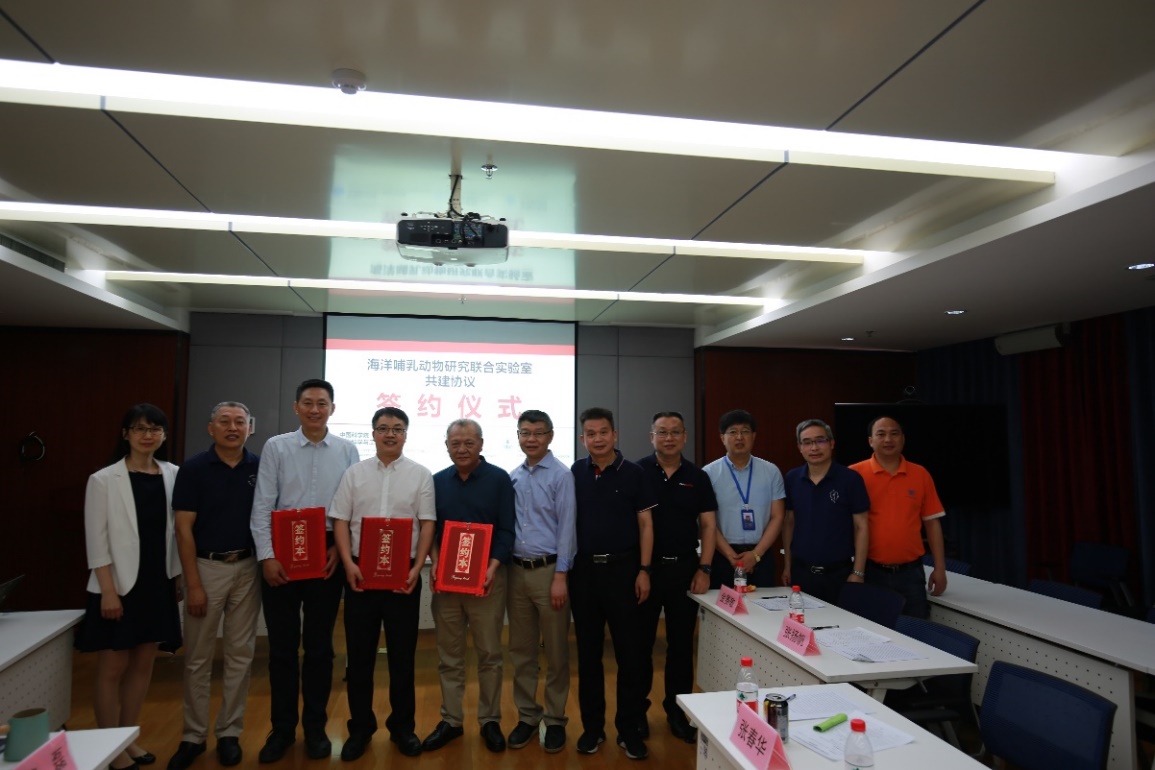 2021年3月23日,中科院声学所与中科院水生生物研究所、中科院深海科学与工程研究所在三亚共同签署了“海洋哺乳动物研究联合实验室”共建协议,共同推进海洋哺乳动物研究进程及海洋生物和生态资源保护及可持续利用。出席签约仪式的有中科院水生所殷战所长、解绶启书记、胡炜副所长、王丁研究员,中科院深海所许惠平副所长、代亮副书记、李松海研究员,中科院声学所李明庚副所长、张春华研究员以及各单位科技管理部门同志。