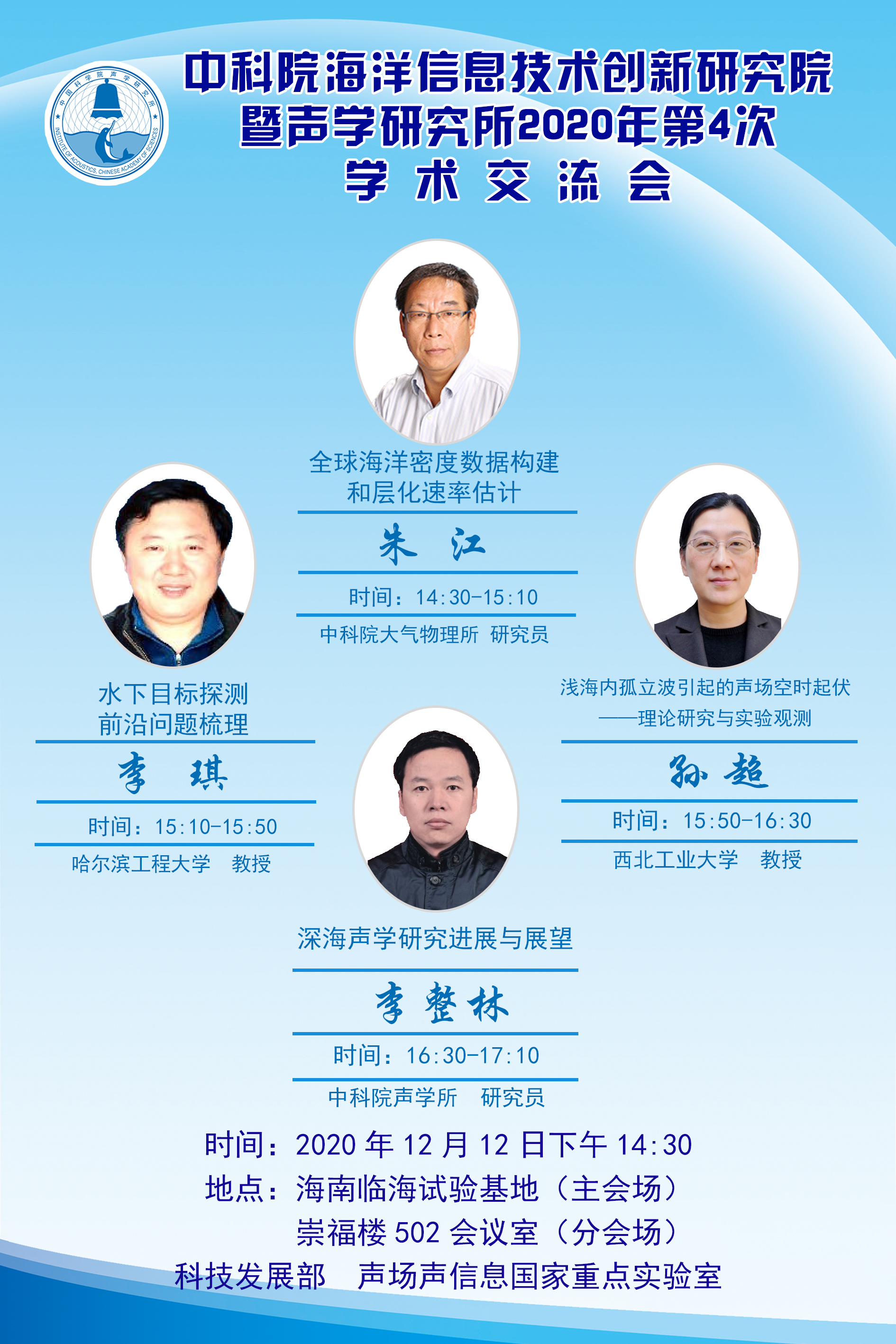 中科院海洋信息技术创新研究院暨声学研究所2020年第4期学术交流会(总第4期)通知