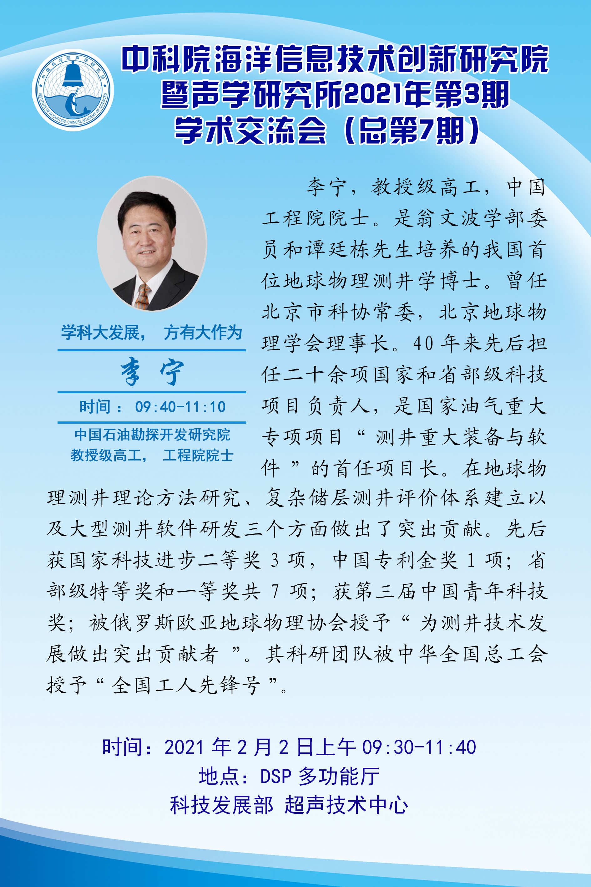 中科院海洋信息技术创新研究院暨声学研究所2021年第3期学术交流会通知