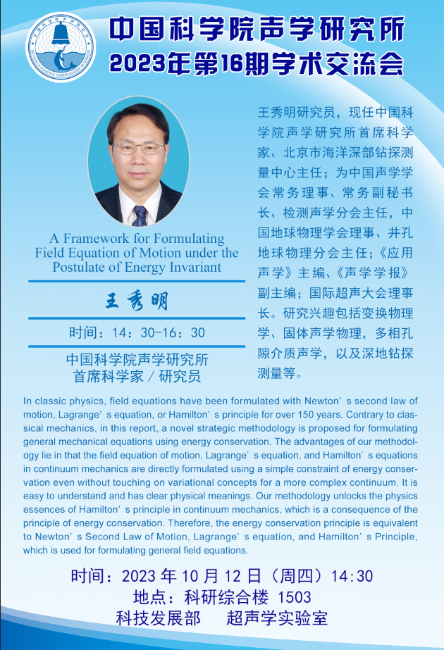 1964年,为落实国家声学规划,满足国家迫切需要,形成全国声学学科研究中心,经国务院副总理聂荣臻元帅批准,成立中国科学院声学研究所(以下简称声学所),将原中科院电子所的水声、超声、建筑声3个实验室,1958年成立的南海研究站、1960年成立的东海研究站、1961年成立的北海研究站整体纳入声学所。声学所是从事声学和信息处理技术研究的综...