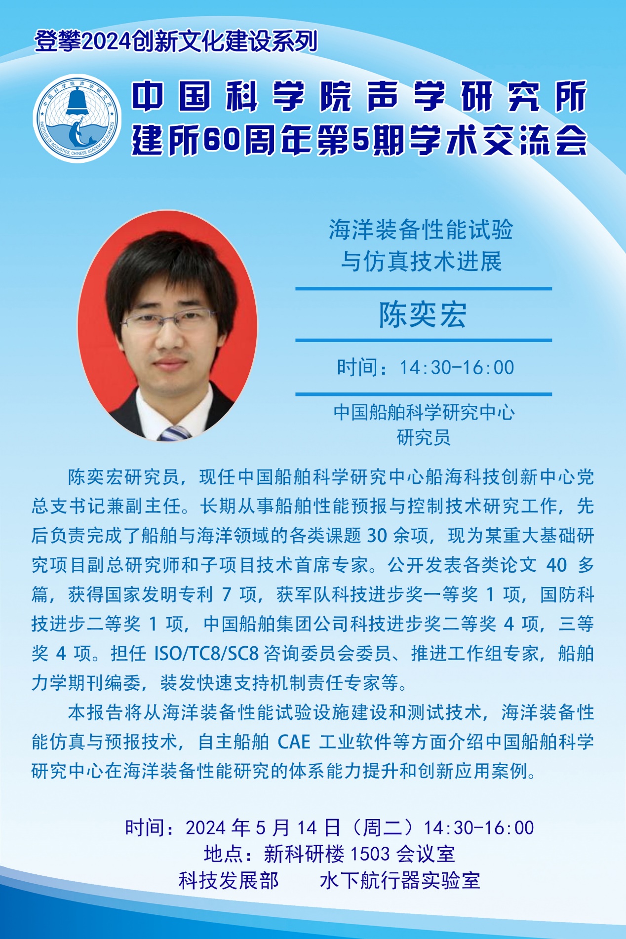 1964年,为落实国家声学规划,满足国家迫切需要,形成全国声学学科研究中心,经国务院副总理聂荣臻元帅批准,成立中国科学院声学研究所(以下简称声学所),将原中科院电子所的水声、超声、建筑声3个实验室,1958年成立的南海研究站、1960年成立的东海研究站、1961年成立的北海研究站整体纳入声学所。声学所是从事声学和信息处理技术研究的综...