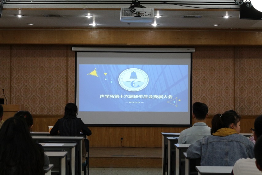 2018年10月24日下午,在DSP楼四层多功能厅,声学所第十六届研究生会换届大会顺利召开。团委崔杰书记、研究生部李辉主任、张华老师、苏晓芳老师和第十五届、十六届研究生会主要学生干部等40余人参加了会议。