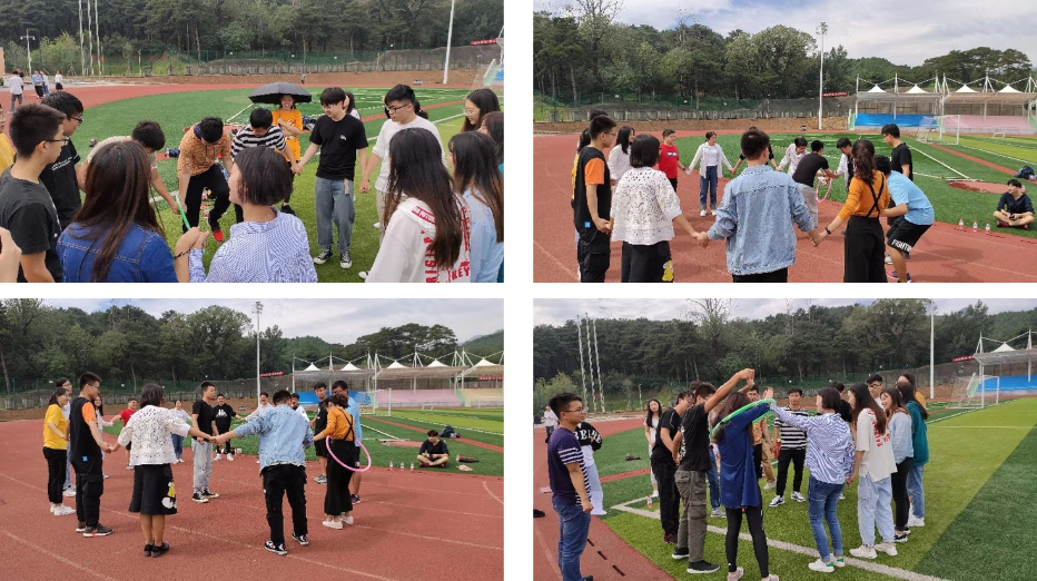 交流环节结束后,开始进行游戏互动环节。首先研一新生分成三个小组,各围成一个圈进行自我介绍。彼此熟悉后,游戏活动正式开始。研究生会准备了3个有趣的小游戏:传呼啦圈——同学们相互配合,用最短的时间让呼啦圈在每个人身上穿过;跳大绳——每人都参与比赛,有序跳绳;你划我猜——充分开发脑洞和表演天赋,相互配合。