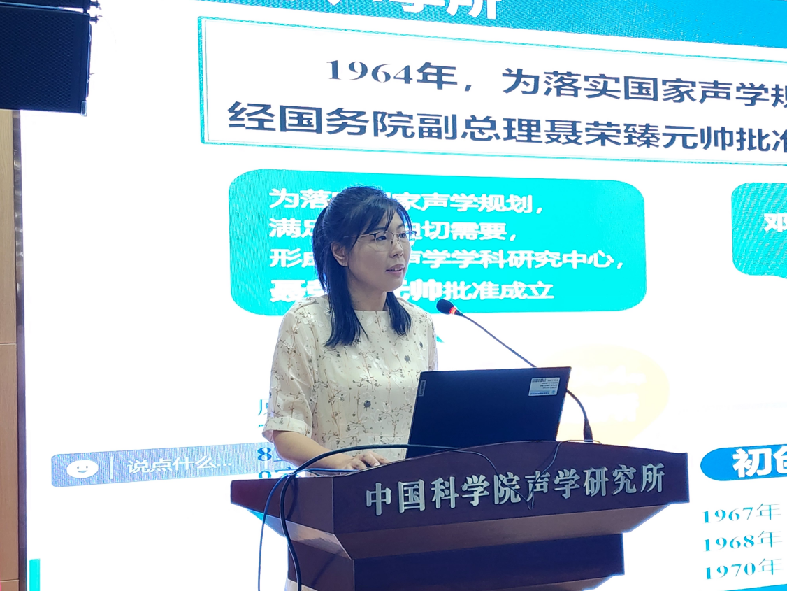 人力资源部主任张莉介绍了声学所所情。她全面介绍了声学所的发展历史、科研工作以及研究生教育情况。