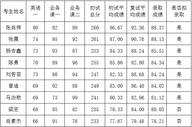 按照2020年声学所博士招生计划,统考博士生拟录取7人,参加复试考生详情见附件,拟录取名单如下,现予公示。