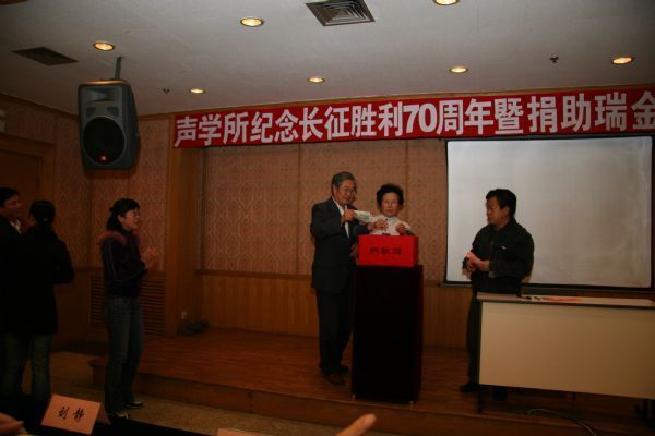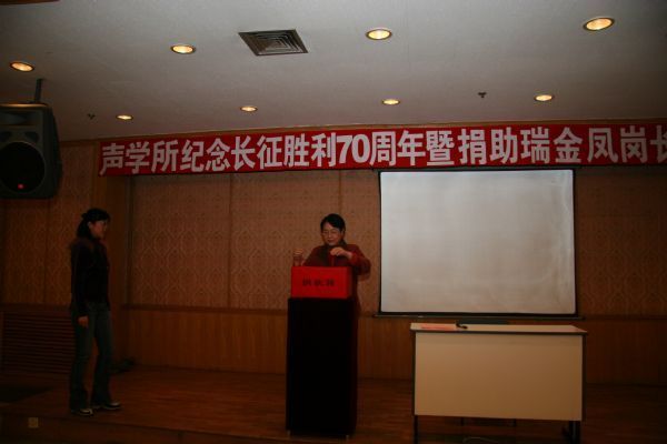 会上,所团委委员崔寒茵宣读了声学所党委、工会、团委、研究生会联合发起的“向江西瑞金凤岗长征小学捐赠倡议书”。倡议书号召全体共产党员、共青团员、广大职工积极行动起来,踊跃参加向革命老区长征小学的捐赠活动,以自己的实际行动,为老区献去一份爱心,以实际行动纪念红军长征胜利70周年,弘扬长征精神,关爱红都教育。