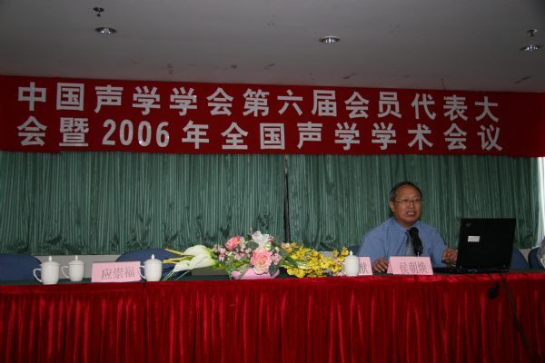 中国声学学会第六届会员代表大会暨2006年全国声学学术会议于2006年10月18日-10月22日在厦门召开。共有430人参加了本次大会,这是我国声学界几代人共同参与的一次会议。参加人数为近年来国内声学会议之最。马大猷院士、应崇福院士、张仁和院士、侯朝焕院士、杨士莪院士、马远良院士、吴硕贤院士等参加了会议。