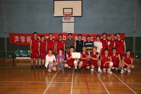 2007年5月31日12时30分,中科院声学所“中科海讯杯”篮球赛冠亚军决赛在海淀体育馆打响.DSP篮球队在郭涛和刘建的带领下经过1小时的激烈战斗,最终以47比33的比分战胜机关篮球队,在海淀体育馆内捧起了中科海讯冠军杯.