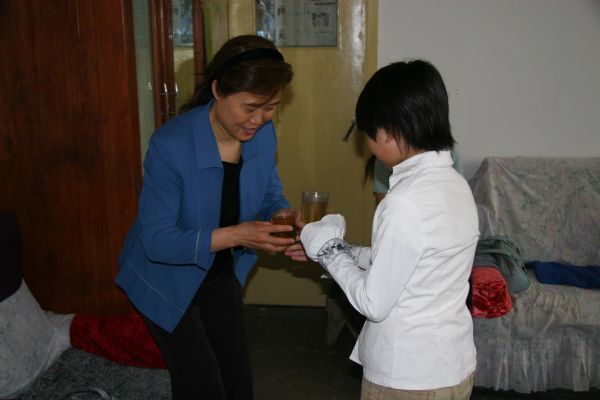 还未到小俊家,远远地,就看见小俊和她的妈妈、奶奶在路口欢迎我们。与一年前相比,小俊又长高了不少,脸上依然挂着纯真而灿烂的笑容。走进小俊家,不大的院子依然显得有些凌乱,家里的陈设依然简单、朴素,但刚刚漆过的翠绿的大门和刚刚粉刷过的雪白干净的墙壁向我们昭示着小俊一家在自己的辛勤劳动、努力奋斗下日子正越过越好。