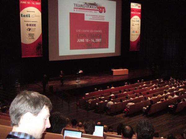 (the 14th International Conference on Solid-State Sensors, Actuators and Microsystems, 简称Transducers’07) (http://www.transducers07.org/于2007年6月10日至6月14日在法国里昂召开,声学所刘梦伟博士赴法国参加了Transducers’07国际会议,这也是我所首次参加此项大会。Transducers会议是国际微机电系统(MEMS)领域规模最大、覆盖范围最广、层次最高的学术会议。本次会议共有超过1000名各国各地区的学者参加,来自中国大陆MEMS领域包括中国科学院声学所、微系统所、电子所、北京大学、清华大学、上海交通大学、东南大学等单位的20余人参加了本次大会。