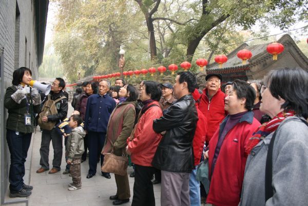 恭王府花园位于前海西街17号恭王府,此府是清代规模最大的一座王府,面积为一百多亩,相当于中山公园,也是至今保存最好的一座王府,曾是和珅的宅邸。恭王府花园占地38.6亩,园内曲廊亭榭,池塘花木,叠石假山。讲解员绘声绘色地讲解,诉说着发生在几百年前一段段真实的故事,一步一美景,一景一故事深深地吸引着大家。午餐后,大家乘车来到位于宣武区珠市口西大街241号纪晓岚官邸。老同志们都在电视剧《宰相刘罗锅》、《铁齿铜牙纪晓岚》中都了解贪官和珅和清官纪晓岚这些历史人物,对比一清一贪两座宅邸老同志们感慨万千,纷纷合影留念,开心度过一天快乐时光。