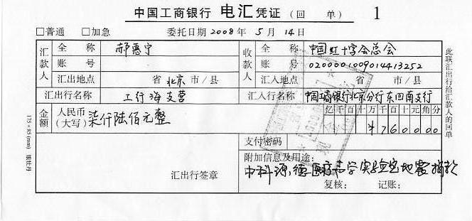 此刻伸出我们的援助之手,奉献一份爱心,每个人都尽一点绵薄之力,对挨冻受饿的灾区人民来说就多一份希望就多一份温暖。5月13日,医用声学实验室及中科源德医疗声学实验室的全体成员怀着沉重的心情进行了募捐,并将筹集款项交给了中华红十字会总会,为灾区人民祈祷祝福,希望我们的一点微薄之力能带给灾区人民带去一点帮助。