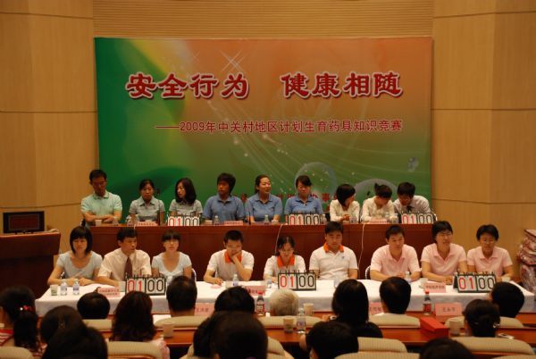 2009年是海淀区人口计生委倡导的药具宣传服务年。为深入贯彻落实《北京市计划生育药具工作改革实施方案》,充分发挥计划生育药具在人口和计划生育工作中的物质保障作用,让更多的育龄人群特别是中关村地区众多科研人员了解我国现行的计划生育药具供应政策,享受到优质的药具管理与服务,2009年5月27日,中关村街道办事处和中国科学院人口计生办在中科院数学与系统科学研究院报告厅联合举办2009年中关村地区“安全行为 健康相随”药具知识竞赛。来自中科院科研院所的6支参赛队伍参加了比赛,声学所代表队表现优异,荣获二等奖。