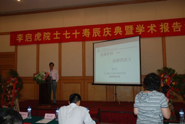 5月25日,北京翠宫饭店二楼学术报告厅布置得华丽堂皇,喜气洋洋,来自二部一室、二部五室和二部六室等部门的近百名职工、研究生和十余位嘉宾欢聚一堂,共庆李启虎院士七十华诞。张春华副所长作为李院士的学生出席庆祝仪式并致贺词,嘉宾们多数曾师从于李院士,目前分别在相关单位任要职。会议由原声学所副书记景荣才主持。
