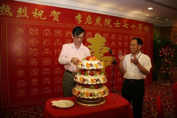 李启虎院士切生日蛋糕