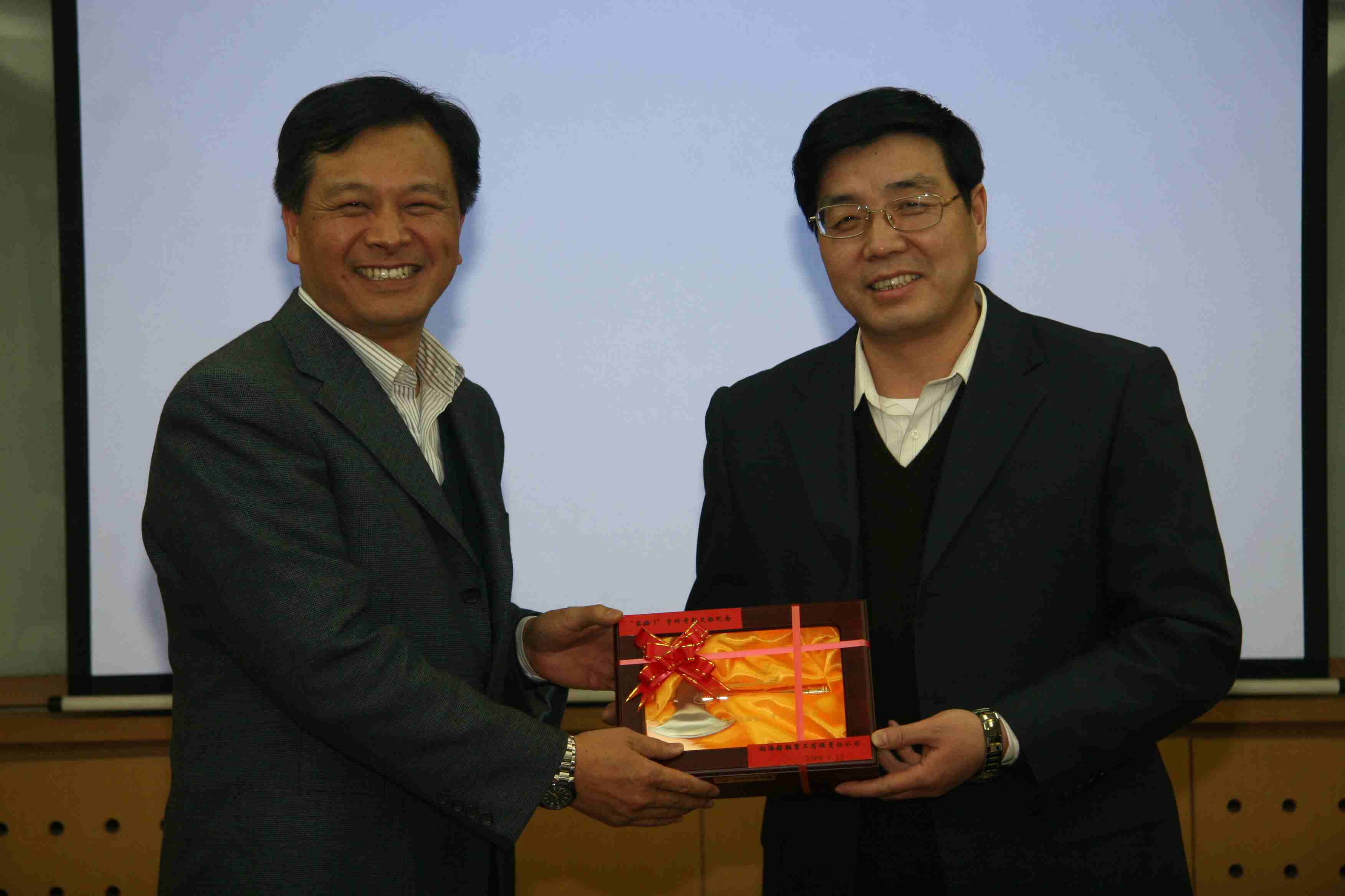 田静局长将科考船交付时使用的砍缆斧转交王小民所长