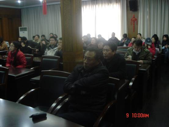 胡长青站长向大家介绍了近日召开的声学所2010年工作会议,他详细地介绍了声学所2009年的工作总结和新一年的工作主题和要点,并着重传达了工作会议精神。窗外,上海少见的银雪飞舞,会议室内东海站的新老职工济济一堂,认真聆听着报告内容,“稳健,2010”,让全体职工都感到振奋鼓舞、重任在肩。