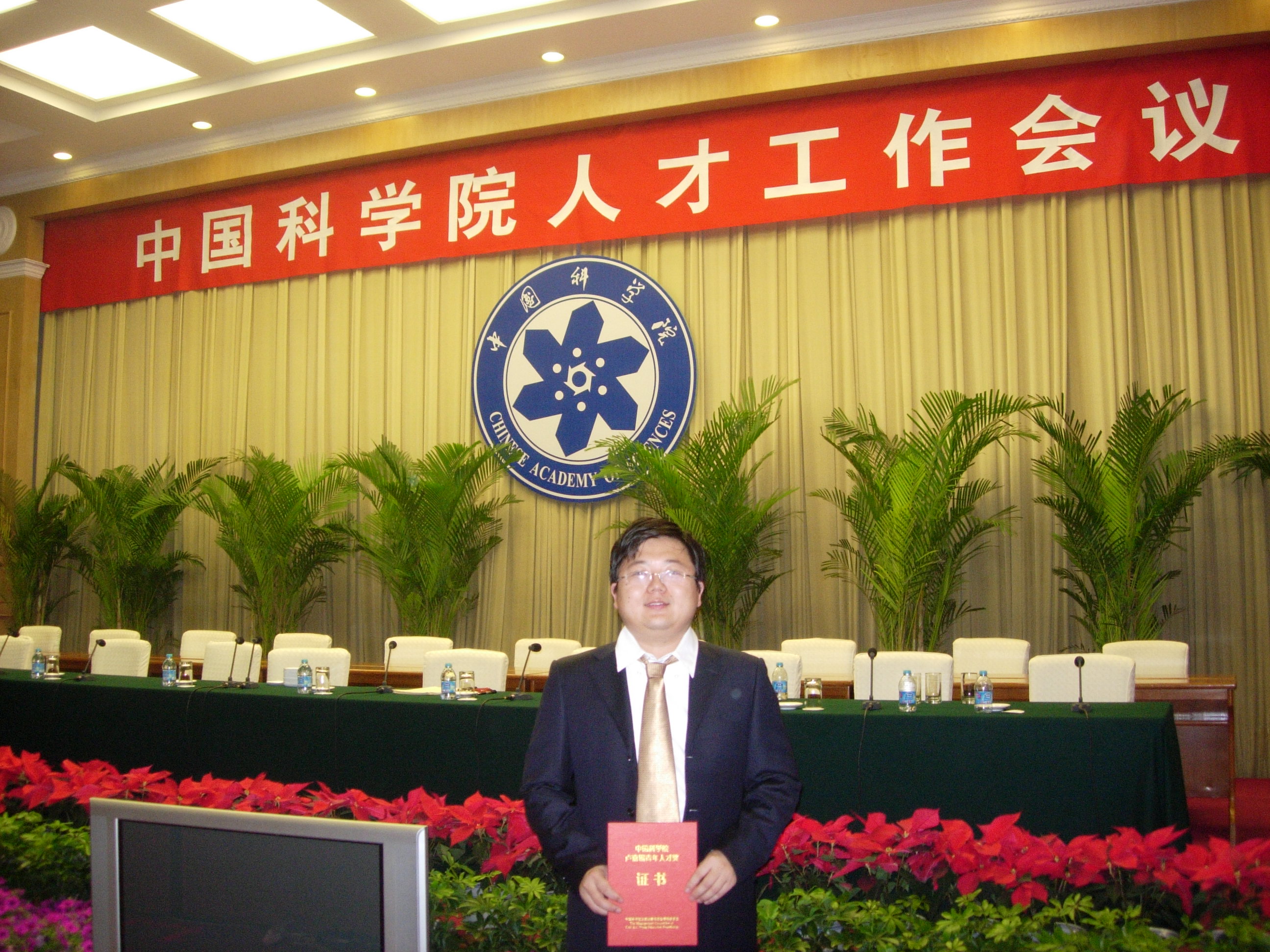 日前,刘晓东同志又荣获“中国科学院卢嘉锡青年人才奖”,在2010年6月2日召开的中国科学院人才工作会议上受到表彰,并由院领导颁发了证书。