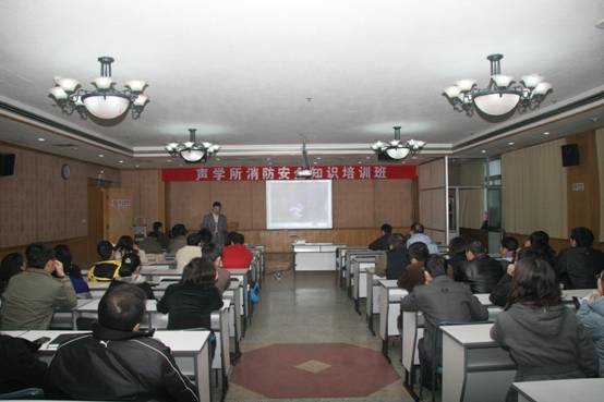 2010年11月2日,为进一步增强职工的防火意识,防患于未然,声学所办公室特邀北京市火灾防治中心的消防教官,对所内各单位兼职安全员进行消防知识教育和培训。