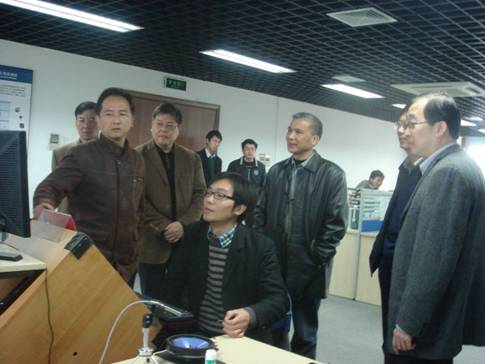 研发人员为丁院长演示电声检测仪