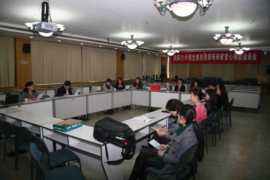 为了响应国家“开展幸福工程——救助贫困母亲行动”的号召,为了让全天下所有的母亲都能走出贫困,获得幸福,4月12日,声学所在DSP大楼四层多功能厅组织召开“向实行计划生育的贫困母亲献爱心”捐款动员会,号召全所职工向实行计划生育的贫困母亲捐款献爱心。会议由负责计划生育工作的杨丽同志主持,办公室主任程洋做捐款动员,全所各部门计划生育宣传员二十余人参加了会议。