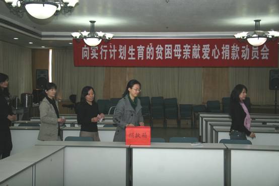 今年是中央国家机关单位开展“幸福工程—救助贫困母亲行动”的第15个年头,为了让全天下所有的母亲都能走出贫困,获得幸福,声学所积极响应国家“向实行计划生育的贫困母亲献爱心”的号召,2011年4月12日至4月18日,声学所计生办组织在全所开展捐款活动,号召全所职工向实行计划生育的贫困母亲捐款献爱心。