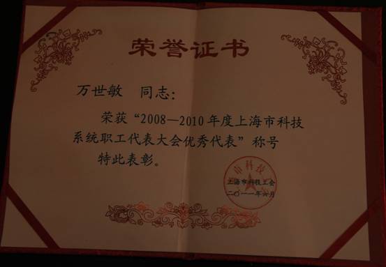 2011年6月2日,东海站高级工程师万世敏被上海市科技工会评为“2008-2010年度上海市科技系统职工代表大会优秀代表”,同时他《关于对单位职工进行分类研究加强人事管理的提案》被评为“2008-2010年度上海市科技系统职工代表大会优秀提案”。