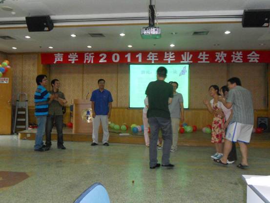 2011年6月9日下午2点半,声学所2011届毕业生欢送会在DSP大楼4层多功能厅隆重举行。人教处张云鹏老师以及任小燕老师出席了欢送会,与毕业生一起观看了文艺表演。