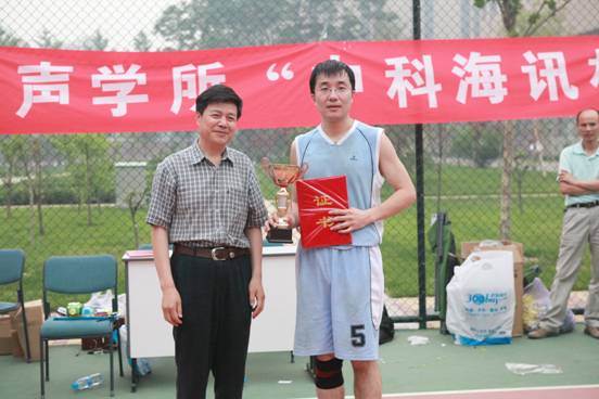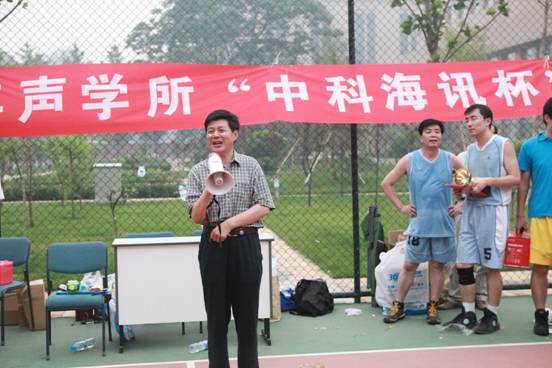 2011年6月22日下午,声学所2011年“中科海讯”杯篮球赛在声学所篮球场举行了最后的巅峰对决——冠军争夺赛,并举行了简短的闭幕式,至此持续10天的赛事圆满落下帷幕。王小民所长,倪宏副所长、副书记等领导和赞助方代表等嘉宾参加了闭幕式。