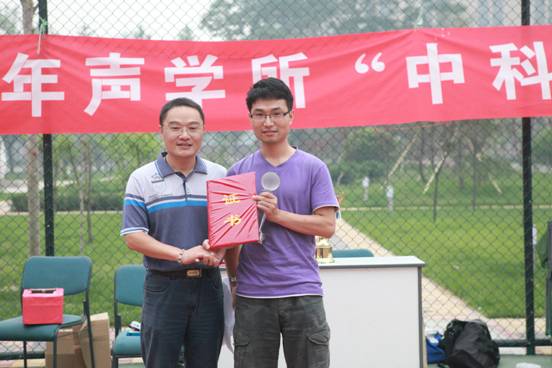 结束现场还有抽奖环节,最终四名幸运的观众每人收获一份幸运,并与所领导亲切合影留念。之后进行了简短的闭幕式和颁奖典礼,网络新媒体队荣膺冠军,机关联队荣获亚军,噪声与振动队荣获季军,微弱信号队获最佳组织奖,重点室队获最佳团队奖,中科海讯队获体育道德风尚奖,海洋声学队、医用声学队和五部队获鼓励奖。所领导及赞助商代表分别为以上获奖的参赛队颁发了证书。
