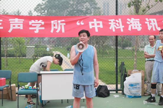 随后,本届比赛的赞助商“中科海讯”代表陈丹平发表讲话,表示很高兴看到声学所的篮球赛水平越来越高越来越有影响力,公司会一如既往的支持篮球赛。
