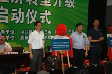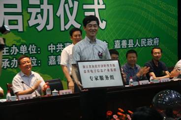 6月27日上午,中共嘉善县委员会和嘉善县人民政府举行隆重的“2011嘉善科技支撑经济转型升级系列活动启动仪式”,浙江省科技厅副厅长丁康生、浙江省科技厅科技条件和基础研究处处长王桂良、嘉兴市科技局局长邢海华、中科院上海分院科技合作处副处长章文俊、中共嘉善县委书记张明超、嘉善县人民政府县长姚高员、嘉善县人大常委会主任盛玉良、嘉善县政协主席吴金林、嘉善县人民政府副县长何慧琴、嘉善县科技局局长孙永铭等领导,以及浙江省块状经济转型升级嘉善电子信息产业集群专家服务组8位专家和嘉善县电声产业专家服务组5位专家等出席仪式。