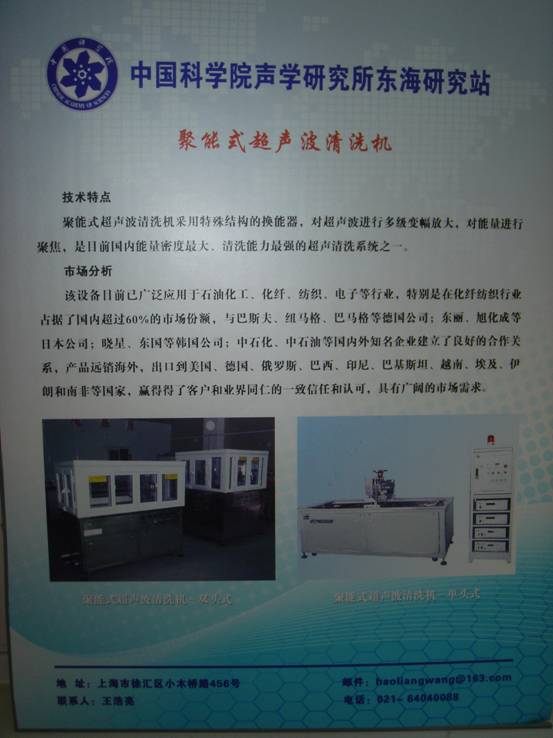 科技竞争已经成为一个国家和地区实力竞争的焦点,科技创新能力与提升区域产业能级的有机结合,也改变着区域的发展面貌。享有“科技卫星城”美誉的嘉定,近年来不断贴合科技产业化需求,全力提升全区战略性新兴产业创新驱动能力。以“聚焦、融合、突破、共赢”为主题的2011年上海嘉定科技博览会于2011年8月25-26日在上海汽车会展中心举行,近百家科研院所和企业展示了高新技术成果,发布技术研发需求,寻求产学研深度对接。东海站在本次科技博览会上展示了“聚能式超声波清洗机”、“超声波钻孔/地下连续墙检测仪”、“船载走航投弃式海洋温度测量系统”等九项东海站高新技术成果。