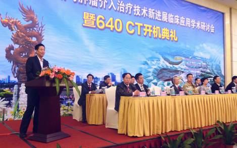 深圳龙岗区政府、深圳龙岗区卫生局、深圳龙岗中心医院、东芝公司等领导参加了开幕式并作了简要发言,会议由深圳龙岗中心医院影像科娄明武主任主持。中科院声学所党委书记兼《中国医学影像技术》期刊社社长张春华及期刊主编李坤成分别就期刊和期刊社取得的成绩及未来的努力方向做了概括性的介绍,并对本次会议的召开表示了热烈的祝贺。随后,举行了深圳龙岗区中心医院“640排 CT”开机典礼。