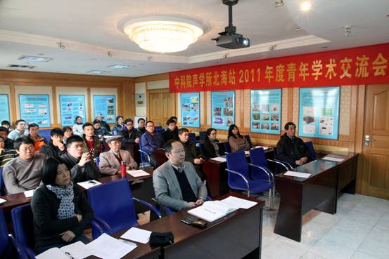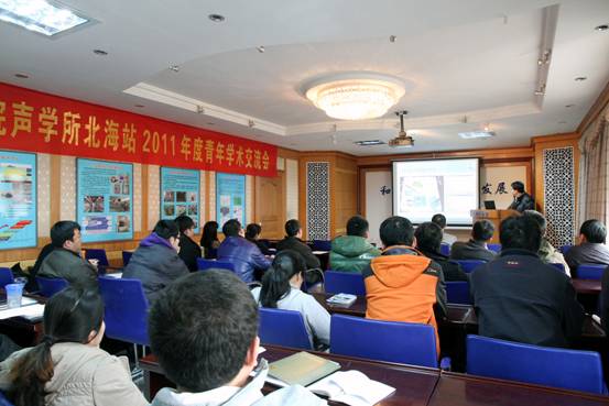 以活跃学术气氛、促进科研交流为宗旨,2011年12月30日,在北海站多功能学术厅,站学术委员会和山东声学学会联合举办北海站2011年度青年学术交流会。慈国庆站长、党委书记张胜坚、安俊英副站长及站学术委员会全体成员、科研骨干、研究生等30余人与会。