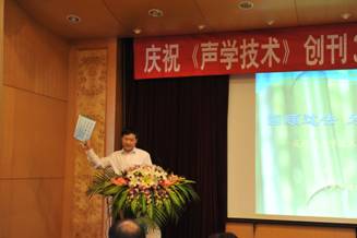 庆祝会上,上海市新闻出版局陈丽副局长作了重要指示,通报了上海报刊工作情况、报刊改革、发展和管理各项工作,对《声学技术》创刊30周年表示祝贺,对《声学技术》的学术水平、编校工作给予肯定和鼓励,并将支持《声学技术》持续发展。胡长青站长代表主办单位领导致辞,欢迎各位领导、嘉宾及代表出席会议。他简要回顾了水声技术的发展及《声学技术》的创刊历史,肯定了30年来《声学技术》所取得的成绩;胡长青站长还宣读了中国科学院声学研究所兄弟期刊《声学学报》、《应用声学》和香港声学学会的贺信。两位老主编、现名誉主编冯绍松研究员、王季卿教授,以激动的心情回忆了当年创刊的艰辛岁月及创刊后经历过的一些沿革和变更。孟昭文理事长在代表上海市声学学会的讲话中说,我们学会自始至终支持期刊的工作,各主办单位给予了人力物力的支持,《声学技术》30年来所取得的成绩,是历届学会领导、各主办单位、历届编委会和编辑部同仁共同努力的结果,学会将会一如既往地支持期刊的工作,希望声学技术“越办越好,名列前茅”,同时也感谢国内外声学界的科技工作者长期以来给予的支持和鼓励!随后,姚蓝主编代表编委会和编辑部,作了题为“回顾过去 为了未来”的报告,汇报了为庆祝这次活动所做的工作,《声学技术》的办刊经历,30年来刊物取得的进步和今后进一步办好刊物的一些设想;姚蓝主编认为,30年来《声学技术》取得了一定的成绩,在声学界赢得了较好的声誉。