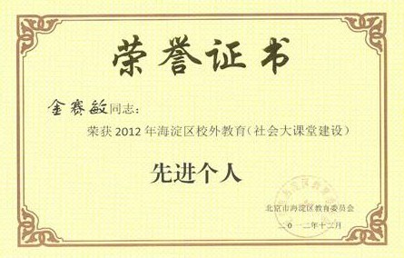 近日,在北京市海淀区教委举办的海淀区校外教育(社会大课堂建设)先进集体和先进个人表彰会上,我所金赛敏同志获得先进个人。