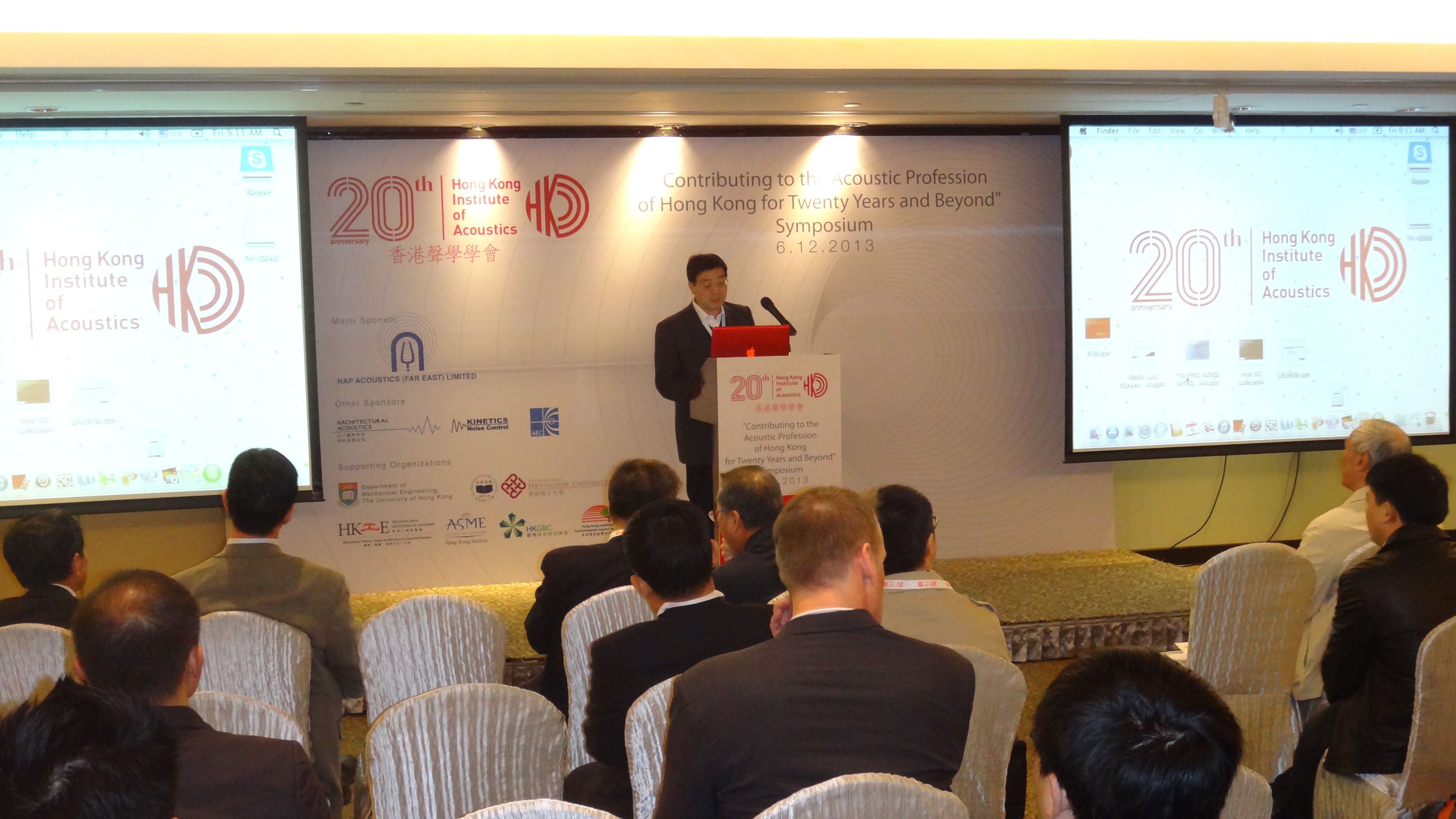 2013年12月6日,中国声学学会副理事长、中国科学院声学研究所所长王小民应邀参加香港声学学会成立20周年庆典。王所长代表中国声学学会和田静理事长在庆典大会上致辞,向香港声学学会20周年华诞表示祝贺。
