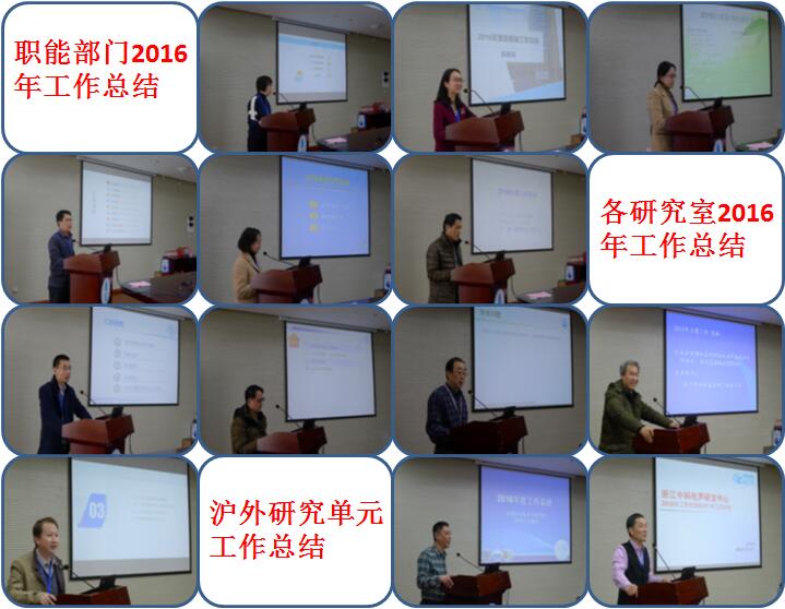 随后许伟杰向会议人员汇报了2016年度东海站工作总结:2016年是东海站面对新形势,确保运行平稳的关键一年。过去的一年,东海站在声学所的有力领导下,经过周密策划和全站职工的共同努力,顺利搬迁至嘉定新园区。广大职工凝心聚力,攻坚克难,有力推动了研究站各项工作的开展:重大科研项目有序推进;合同额与到款额基本保持平稳;单位资产总额持续增加;各方面工作呈现良好发展势头。同时许伟杰分析了东海站目前存在的问题和面临的挑战,也提出了东海站2017年工作主题和工作重点,并要求大家充分研讨。