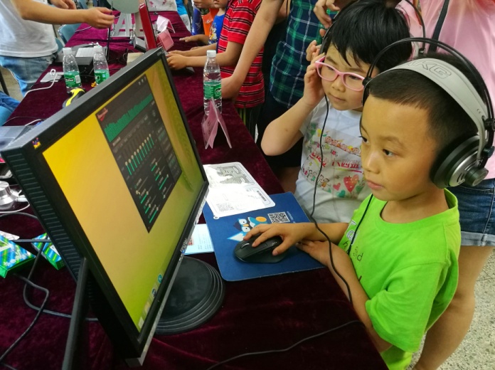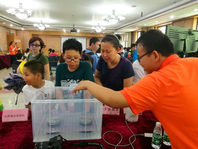 本次公众日通过现场演示、体验互动、科普讲座、科普视频、展点讲解等方式带领大家走入了声学世界。“蛟龙深海探索”视频以专业不乏生动、形象的语言向公众讲解了蛟龙深海探索的应用,本次活动新增了水下通信机内容,水声通信是利用声波在水下进行信息收发的技术,科普志愿者为现场观众展示了水下通信的演示;本次活动首次设置了声学知识有奖竞猜环节,一方面填充了来访者的等待时间,另一方面,通过有奖竞猜的方式,调动大家积极参与到对声学知识的了解与关注活动中,受到了来访小朋友及家长的一致好评。