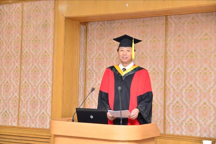 颜永红研究员代表导师向顺利完成学业的毕业生们表达了热烈的祝贺,他回顾了自己在声学所十几年的工作经历,嘱咐同学们再先进的技术都会过时,走上工作岗位后要尽快接过大旗,永远保持拼搏的精神。最后祝福毕业生不仅生活幸福,更要事业有成!