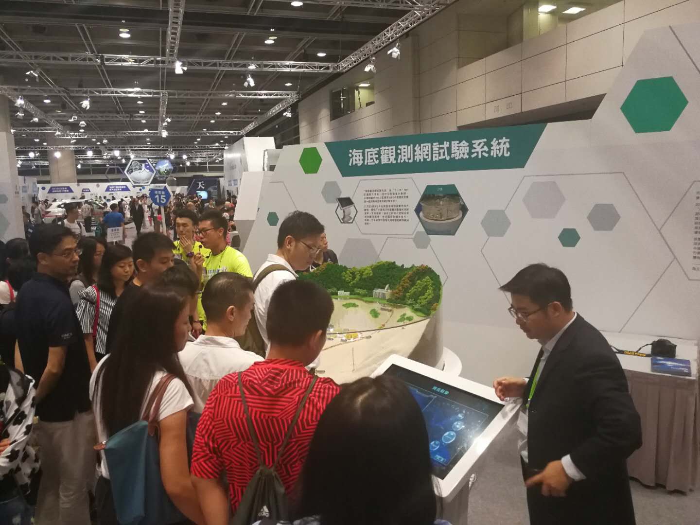 本次展览以“鉴古追今·开创未来”为主题,以中华古代科技文明与今天中国创科成就为主轴,展现中华民族的智慧与气度、古今传承,共设“天”、“讯”、“海”、“中科院互动展区”和“香港之光”五大展区。声学所的“南海深海海底观测网试验系统”成果受邀在“海”展区以沙盘模型配合视频及现场讲解的形式参展,声场声信息国家重点实验室郭永刚、张飞2位同志受邀现场讲解。